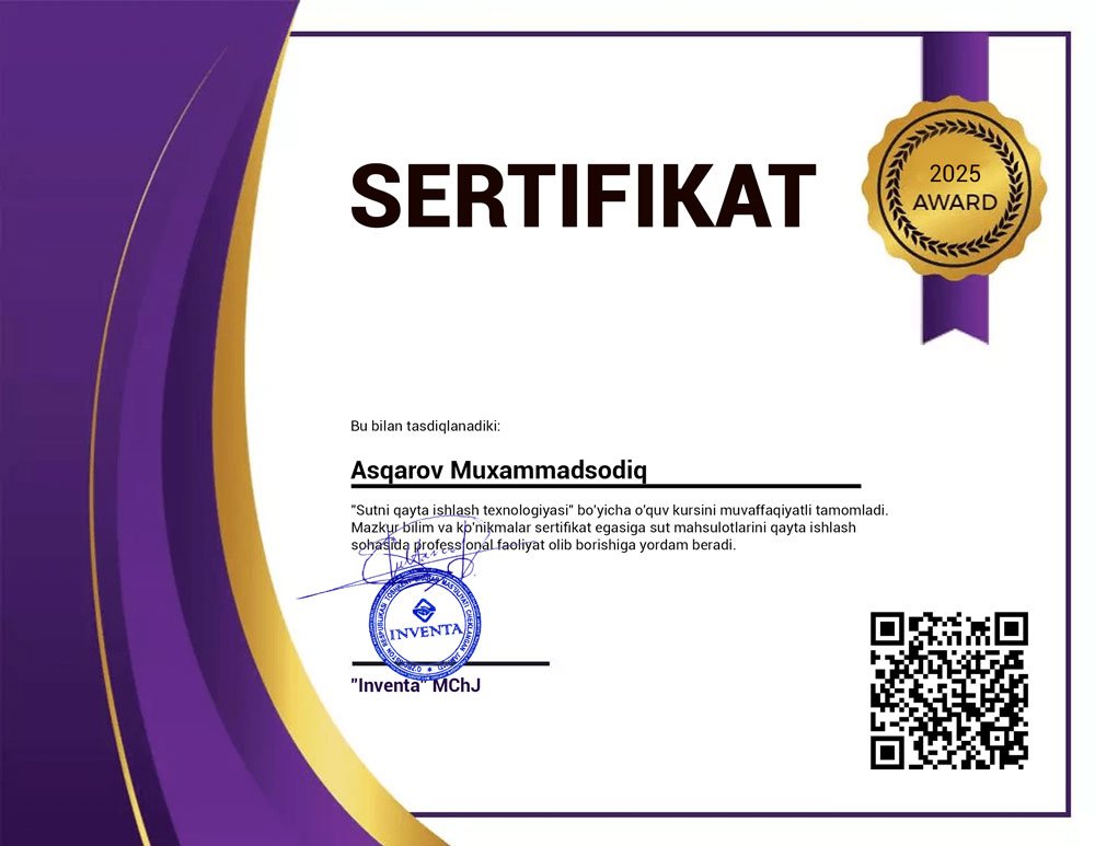 Сут ва сут маҳсулотларини қайта ишлаш заводлари «под ключ»