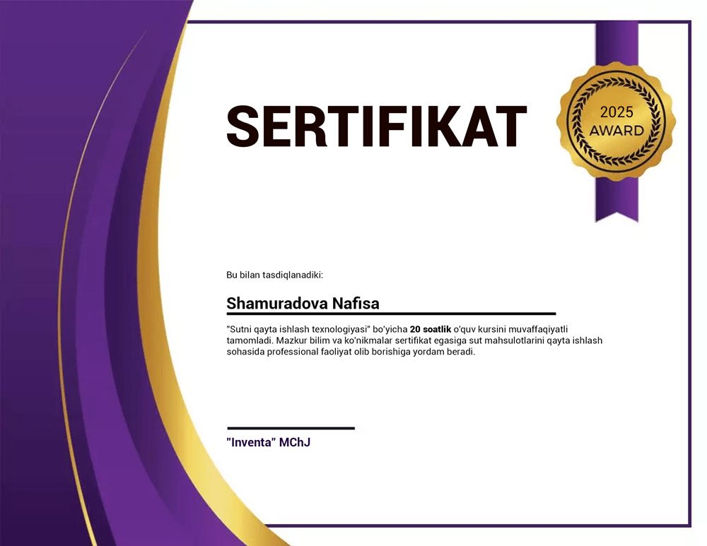 Сут ва сут маҳсулотларини қайта ишлаш заводлари «под ключ»