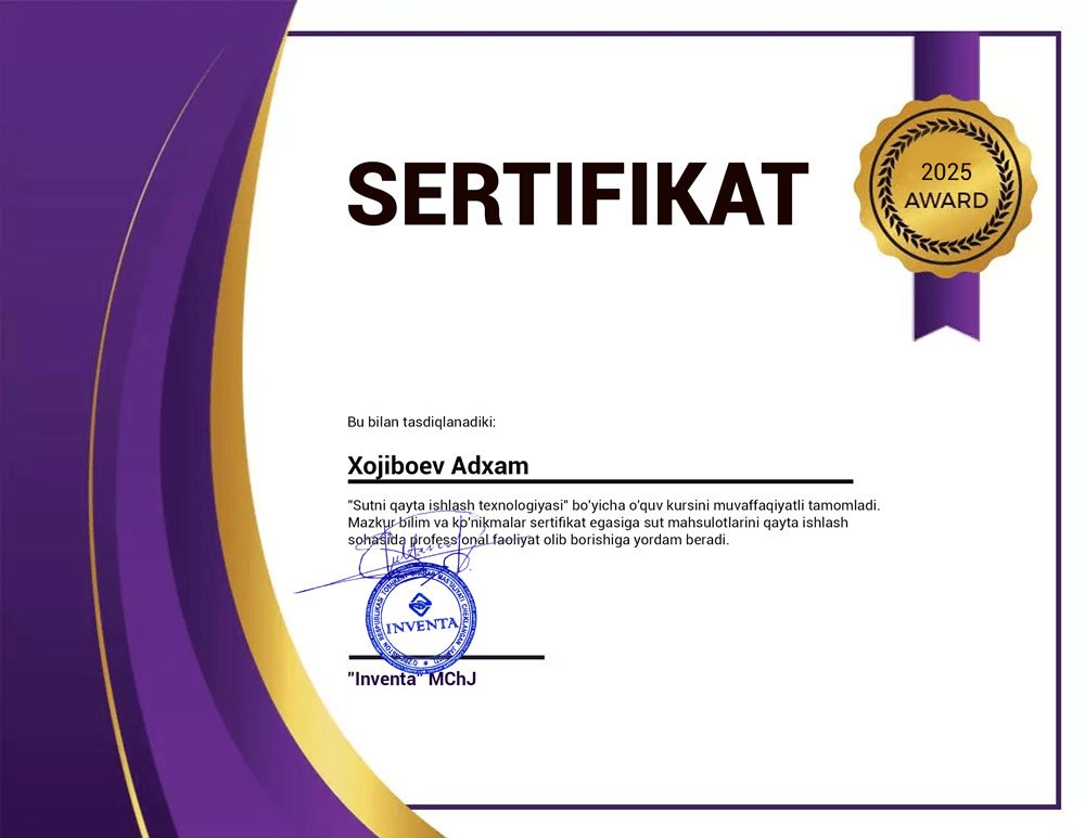 Сут ва сут маҳсулотларини қайта ишлаш заводлари «под ключ»